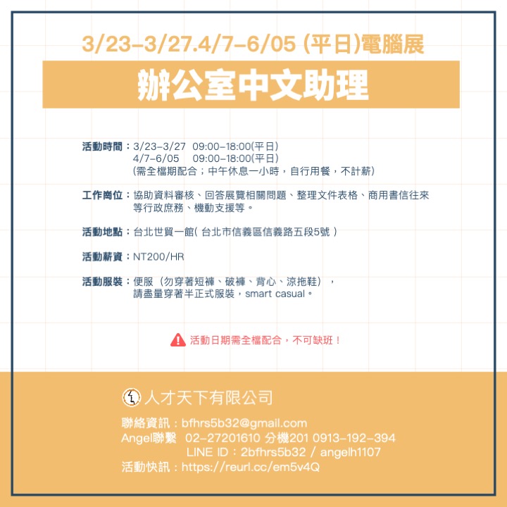 電腦展辦公室中文助理