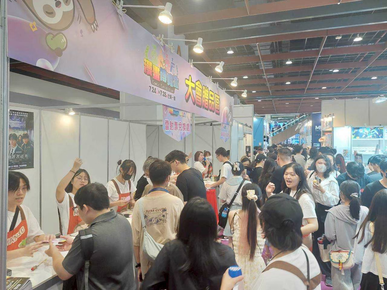 活動概述:第24屆漫畫博覽會主辦單位估計5天展期可創新台幣3億元商機。晚間便陸續有動漫迷在不同出入口等候今天入場「掃貨」,早上10時開放進場前就約有3、4萬人排隊。漫畫博覽會由中華動漫出版同業協進會主辦,今年展會同時與台灣國際電玩電競產業展、台北國際電影玩具暨玩具創作大展舉行,匯聚1200個攤位。展期間有近百場活動,可說跨產業共襄盛舉聯手出擊,連「相信音樂」也在參展行列。文化部政務次長李靜慧表示,今年漫博人潮盛況空前,凸顯國內外文化交流,像是日本館展出去年在日本展出的「台漫滿開.百花繚亂」展,可在國際展會中看到優秀台漫作品,文化部今年首辦青漫獎,相信漫博也有許多希望從事漫畫創作的年輕人,也能讓學生一步步挖掘漫畫創作能量。